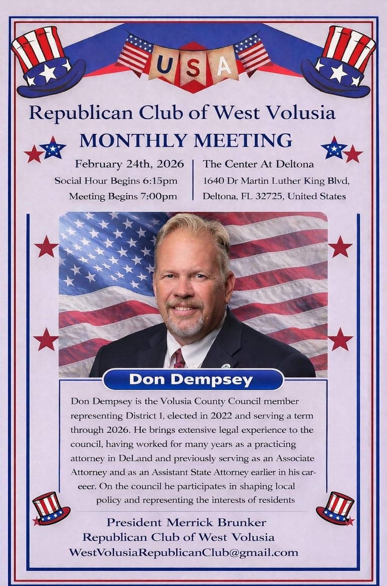 Born at Canaveral Hospital in Melbourne Florida and raised between Orange City, Florida, and Uniontown, Pennsylvania, Don Dempsey’s life has been shaped by both the promise of thriving communities and the lessons of hard times. He saw firsthand the decline of once-prosperous coal and steel towns in Pennsylvania, and those experiences instilled in him a deep appreciation for hard work, resilience, and the importance of economic freedom.